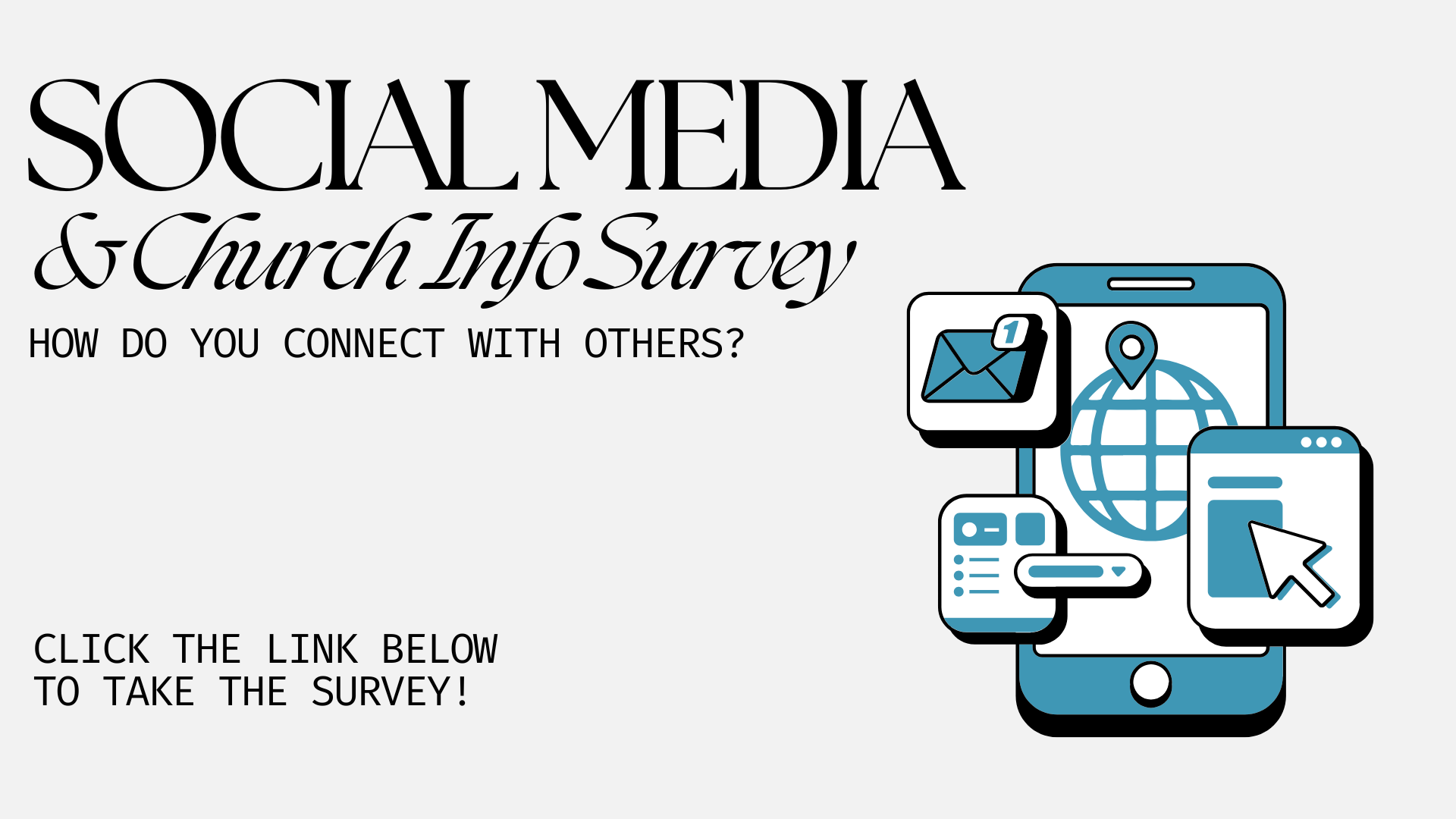 Click the link below to complete a short two-question survey. We’d love to know how you connect with others through social media and how you prefer to receive information about church events.